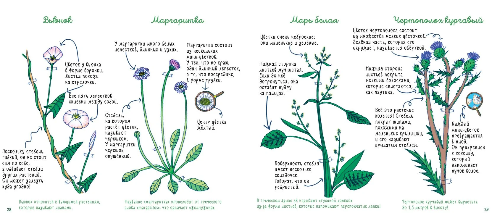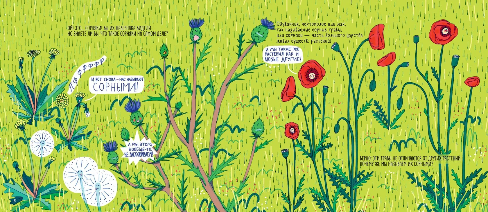 Руководство и одновременно красочный справочник для юных садоводов и ботаников – дошкольников и младших школьников. Сорняки! Часто мы считаем, что они плохие. Мы с ними постоянно боремся на дачном участке, но они побеждают. Среди них есть красивые и неприметные, колючие и ползучие, гибкие и жёсткие. Все они очень разные, и, несмотря на своё название, играют очень важную роль в живой природе.